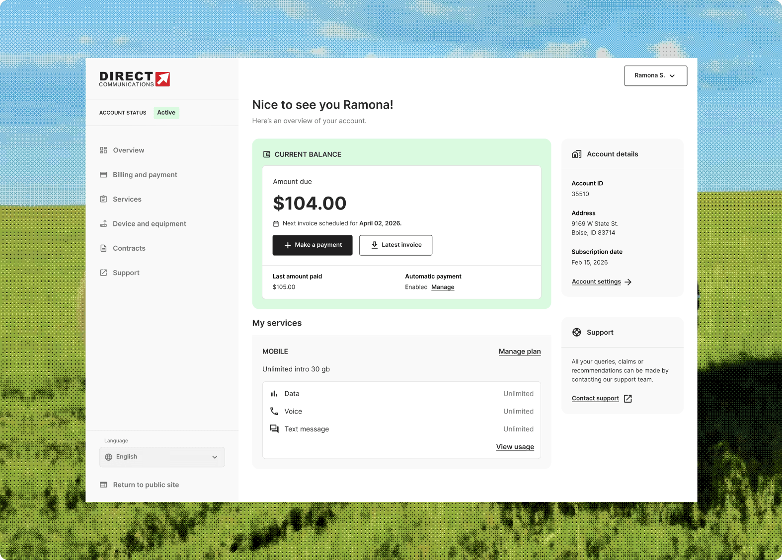 From the customer perspective, mobile feels like a natural extension of their existing services. Within the Direct Communications customer portal, subscribers can view their mobile plans alongside internet services and make modifications in the same interface.